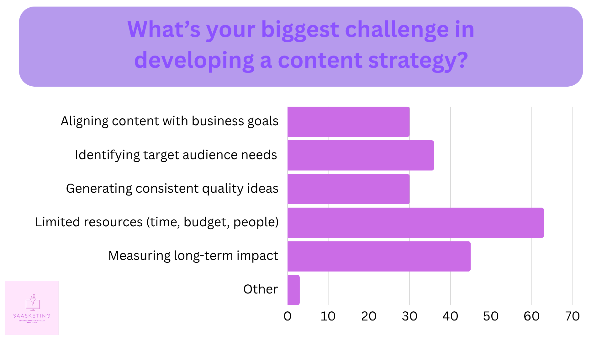 Okay, this was something I didn’t expect. While I thought the biggest struggle behind creating a content strategy would be process, identifying target audience needs, or measuring impact, it’s not the case. The majority of people struggle with limited resources.