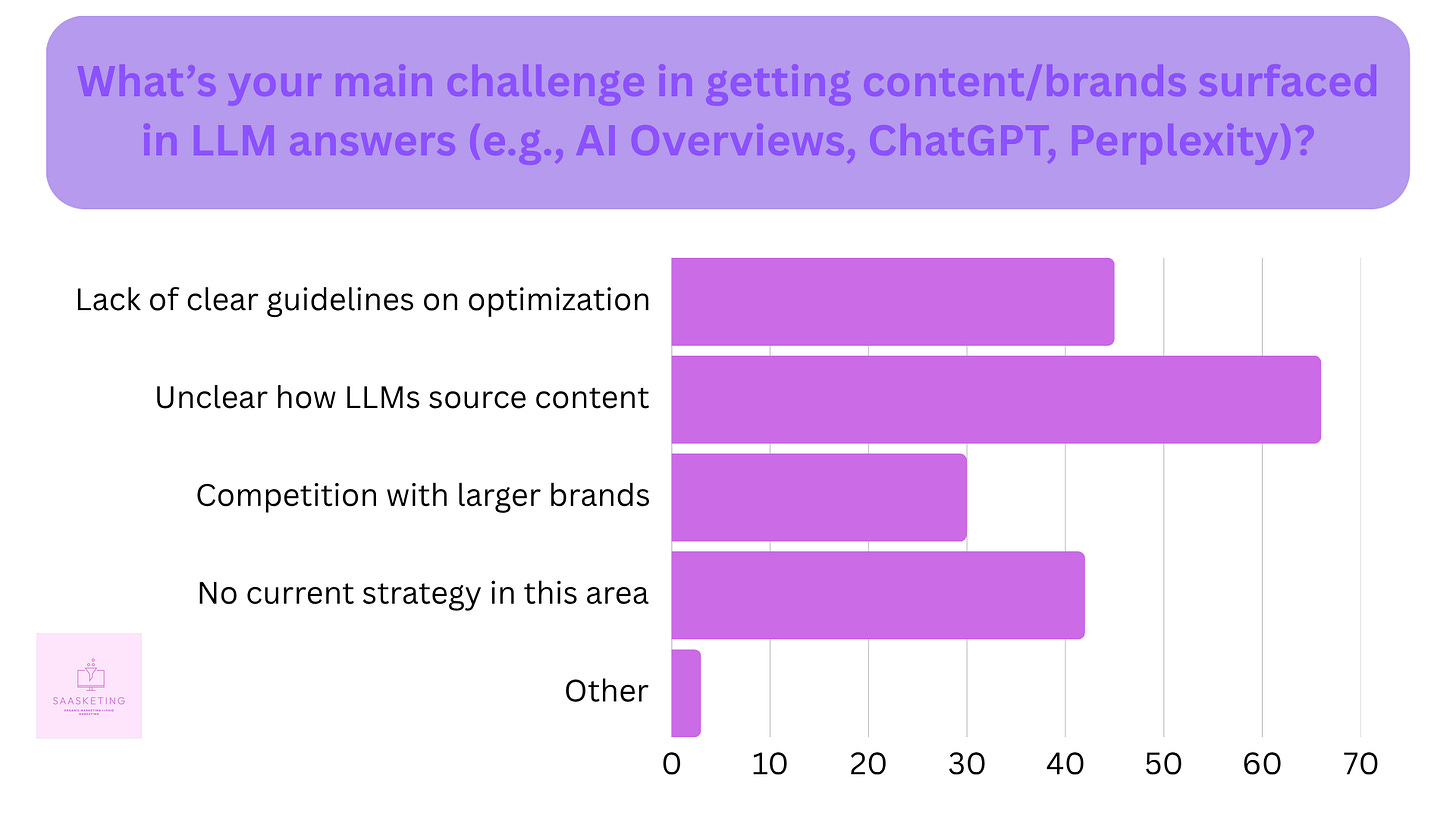 Q3: What’s your main challenge in getting content/brands surfaced in LLM answers (e.g., AI Overviews, ChatGPT, Perplexity)?